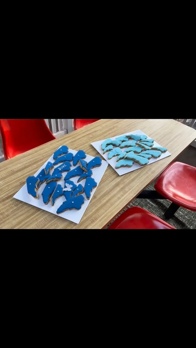 (Think: pastel rattles and onesies, spooky pumpkins and ghosts, or glittery birthday candles…and North Carolina cookies in your choice of blue!)